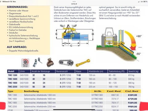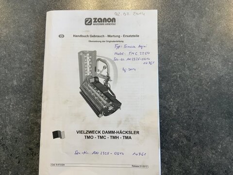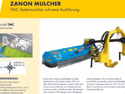 Gebrauchter Zanon Auslegemulcher. Hersteller Zanon Typ TMC2250 Baujahr 2014 Der Mulcher befindet sich technisch und optisch in einem sehr guten Zustand. Es sind die ersten Schlegel verbaut. (Maschine aus erster Hand) Arbeitsbreite 225cm Es werden 2DW Steuergeräte benötigt Antriebsdrehzahl 540 1/min Maschine sofort verfügbar / nur AbholungKontaktdaten: