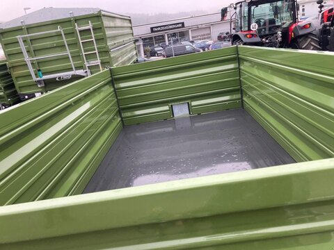 1,0 Neumaschine Dreiseitenkipper FLIEGL EDK 60 FOX 475646 1-Achs Fahrgestell Serie 473309 zul. Gesamtgewicht 6000 kg (entspricht 5000 kg Achslast zzgl. 1000 kg Stützlast) Serie 458466 Anhängehöhe ca. 700 mm Serie 434760 Brücke 4000 mm x 2020 mm, Eckrungen steckbar, Zentralveriegelung rechts, links und hinten, umlaufende Gummidichtung in Spezialprofil geführt, Brückenrahmen aus hochwertigen Hohlträgern, novagrau lackiert Serie 490945 Grundbordwand 500 mm, Getreideauslauf 300 mm x 200 mm, Bordwandverbinder, Stahlbordwände (sandgestrahlt, grundiert u. pulverbeschichtet dunkelgrün) Serie 434683 Hohlträgerrahmen verzinkt - ungefedert Serie 434758 1 Bremsachse, Spurbreite 1650 mm Serie 434679 Auflaufbremse - Rückmatik Serie 436762 Zugholm starr für Obenanhängung Serie 434951 DIN-Zugöse 40 (Ø 40 mm) Serie 434767 Bereifung 15.0/55-17 10 PR / Tragfähigkeit pro Rad 2575 kg bei 30 km/h, 2120 kg bei 40 km/h Serie 490003 25 km/h Ausführung Deutschland mit ABE la-fo ZGM. Serie 434810 schweres Stützrad, klappbar Serie 434759 4-Stufen-Kippzylinder 1500 mm Hub, Endabschalter Serie 434700 2 Fünfkammerleuchten ohne Beleuchtungsträger 12 V mit schlagfestem Glas Serie 434705 Absperrhahn Serie 490946 erster Aufbau 500 mm Besichtigung nach Absprache möglich. Anfragen nur telefonisch Tel. 0176 10111367 Montag -Freitag 8.00-17.00 UhrZul. Gesamtgewicht (t): 6