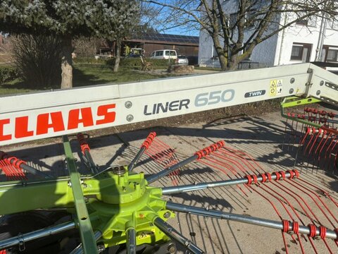 Claas Seitenschwader Liner 650 Twin Baujahr 2011 Arbeitsbreite: 3,50 bis 6,30 m 2 Kreisel mit je 11 Zinkenarmen 4 Doppelzinken pro Arm Kontour FahrwerkKontaktdaten: