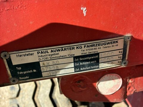 Verkauft wird folgende Maschine im Kundenauftrag: Drehschemel Dreiseitenkipper Auwärter Typ: AK 8.0 Baujahr: 1992 Prichtenmaße: 4,50m x 2,25 m Bordwände 2x 60 cm Abrollplane mit Podest Bereifung: 13.0/65-18 Beleuchtung Kornschieber Getreideauslauf Auflaufbremse Beleuchtung Große 5t Achsen Zugmaul im Heck Technischer Zustand: gut Optischer Zustand: gut zum Preis von 9.000,00 € 19 % MwSt. 1.710,00 € 10.710,00 € Besichtigung nach Absprache möglich. Anfragen nur telefonisch Tel. 0176 1011 1367 Montag -Freitag 8.00-17.00 UhrZul. Gesamtgewicht (t): 8